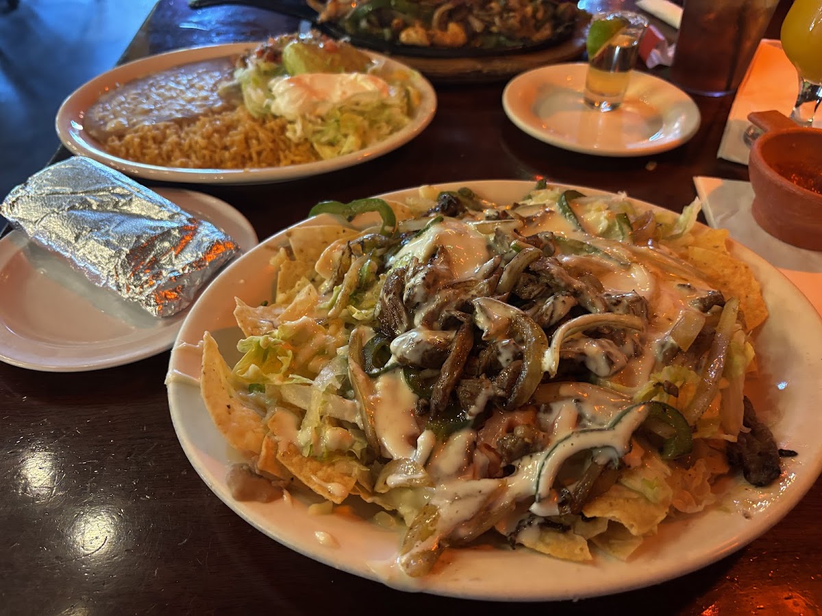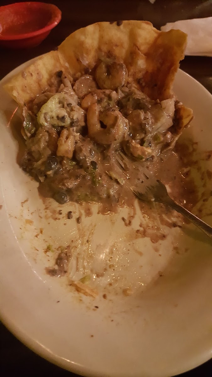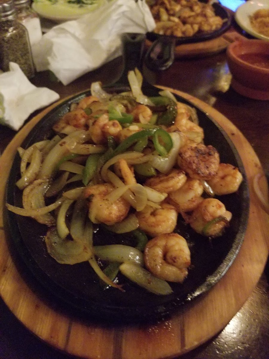 I like the atmosphere in the restaurant and the waiters are quick. I usually order the same thing ever time I go. It's the fajita Taco salad. This time I ordered all of the meats (chicken, steak and shrimp) whereas I usually order steak or chicken. This time, the chicken was a very small portion and the steak was a little tough, but there were plenty of shrimp. It wasn't worth complaining about, so I just ate it. I think I will go back to the chicken because it was seasoned well. Also, it was a night they were crowded--Friday. But it will stay on my list of regular restaurants.
