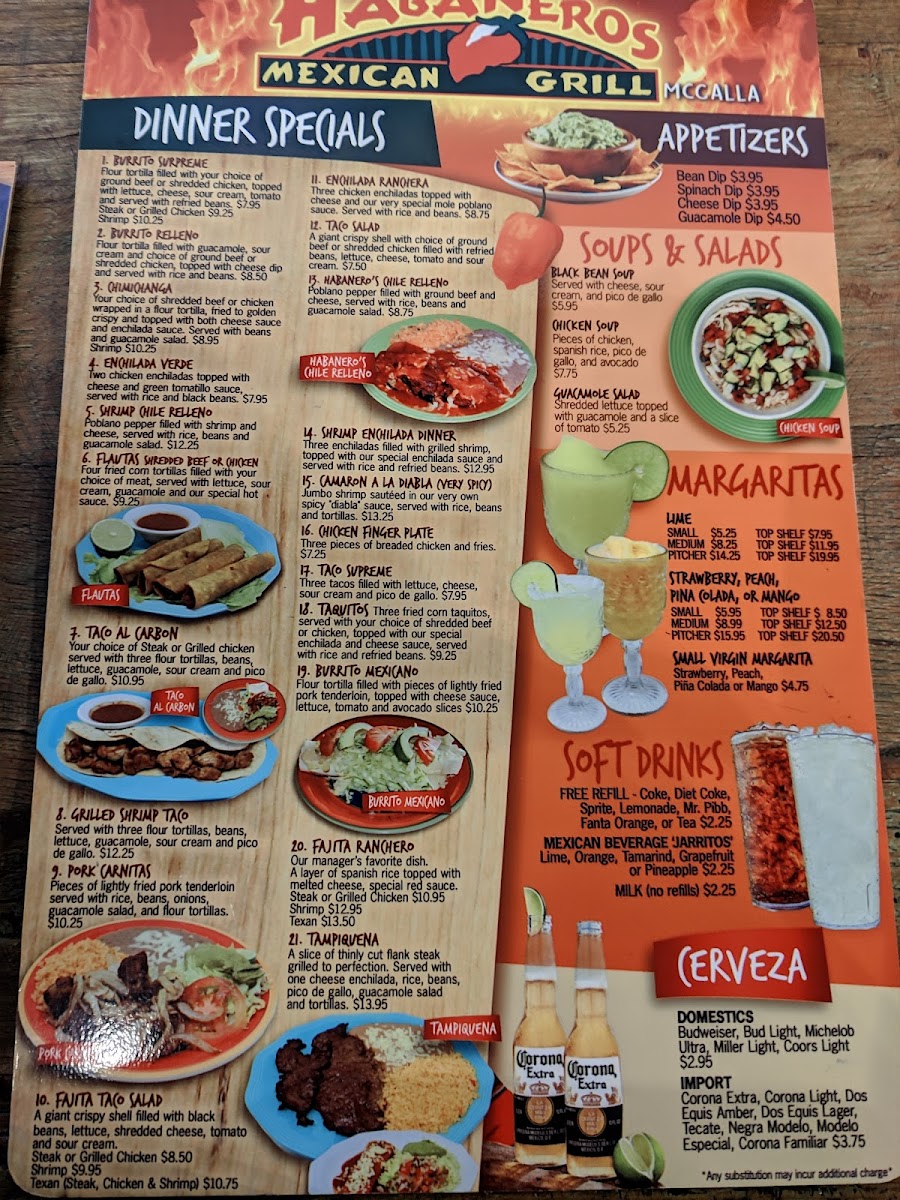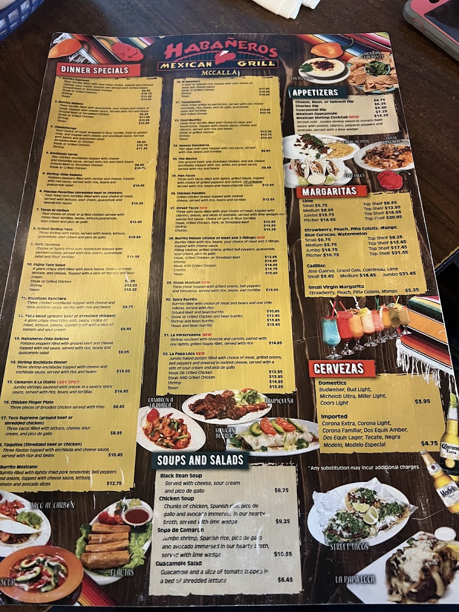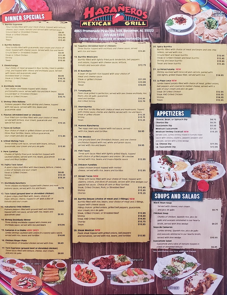 The menu at Habaneros Mexican Grill offers a straightforward and inviting selection of classic Mexican dishes and grilled favorites, perfect for casual dining any day of the week. Whether you're stopping by for a hearty lunch or a relaxed dinner, the menu brings comforting and familiar flavors that pair well with the warm, friendly atmosphere inside.